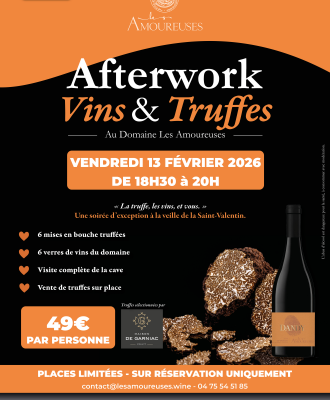 Le vendredi 13 février 2026, le Domaine Les Amoureuses vous invite à vivre un moment de dégustation unique : la rencontre de deux trésors du terroir dans l’intimité de notre chai.